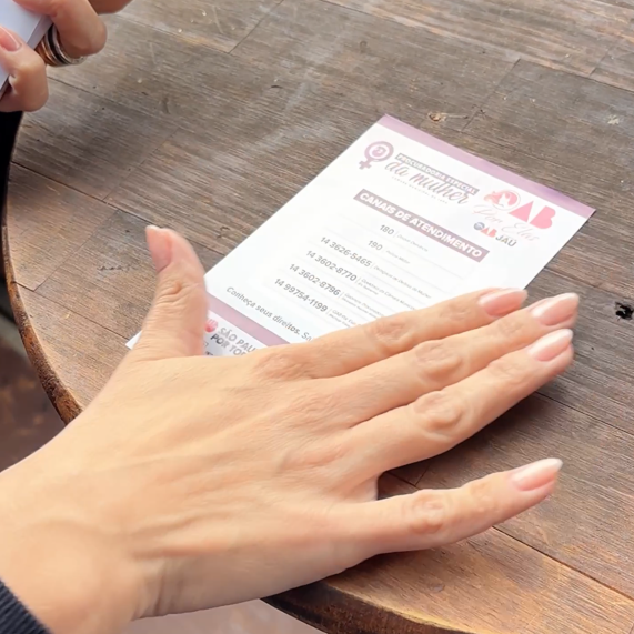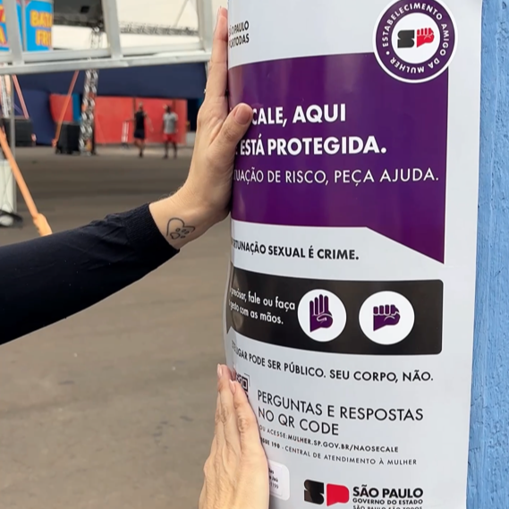 A iniciativa contou com cartazes e materiais informativos fornecidos pela Secretaria da Mulher do Estado de São Paulo, reforçando a importância da divulgação de direitos e do fortalecimento da rede de proteção para as mulheres.