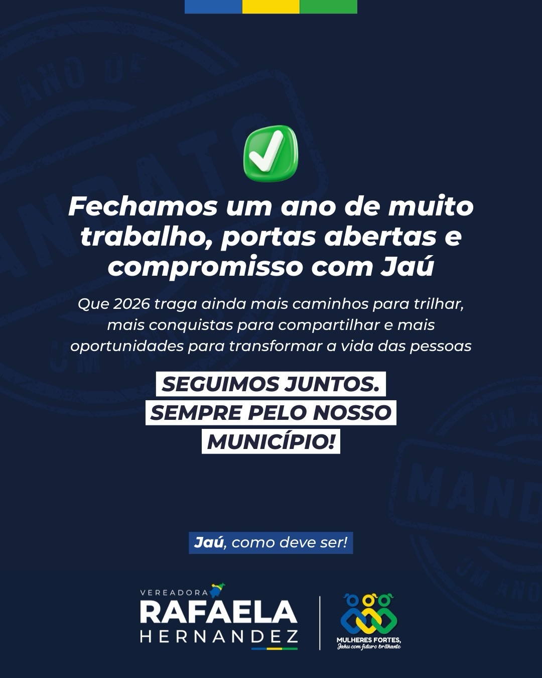 Ao final de 2025, a vereadora Rafaela encerrou o primeiro ano de mandato com a avaliação de um período marcado por trabalho intenso, dedicação e responsabilidade com o município de Jaú.