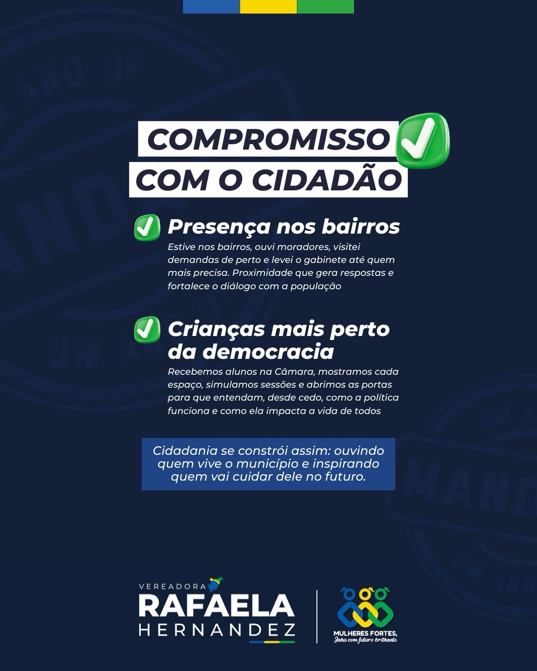 A atuação foi pautada pela escuta, pelo respeito à população e pelo compromisso com a transparência e a seriedade na condução do mandato, reconhecendo que os avanços são resultado de um trabalho coletivo e contínuo.