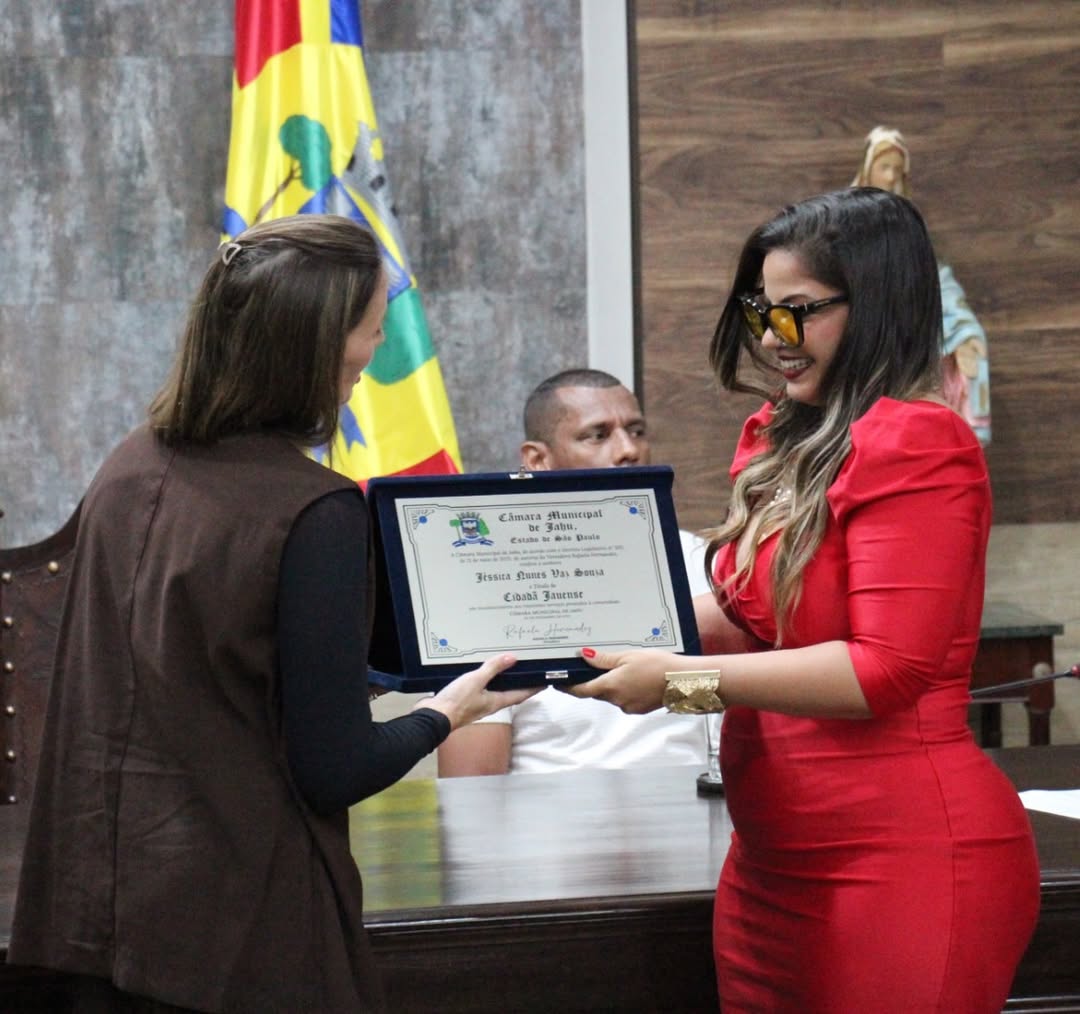 No dia 03 de dezembro de 2025, foi realizada a entrega do Título de Cidadã Jauense à Jéssica Nunes Vaz Souza, em...